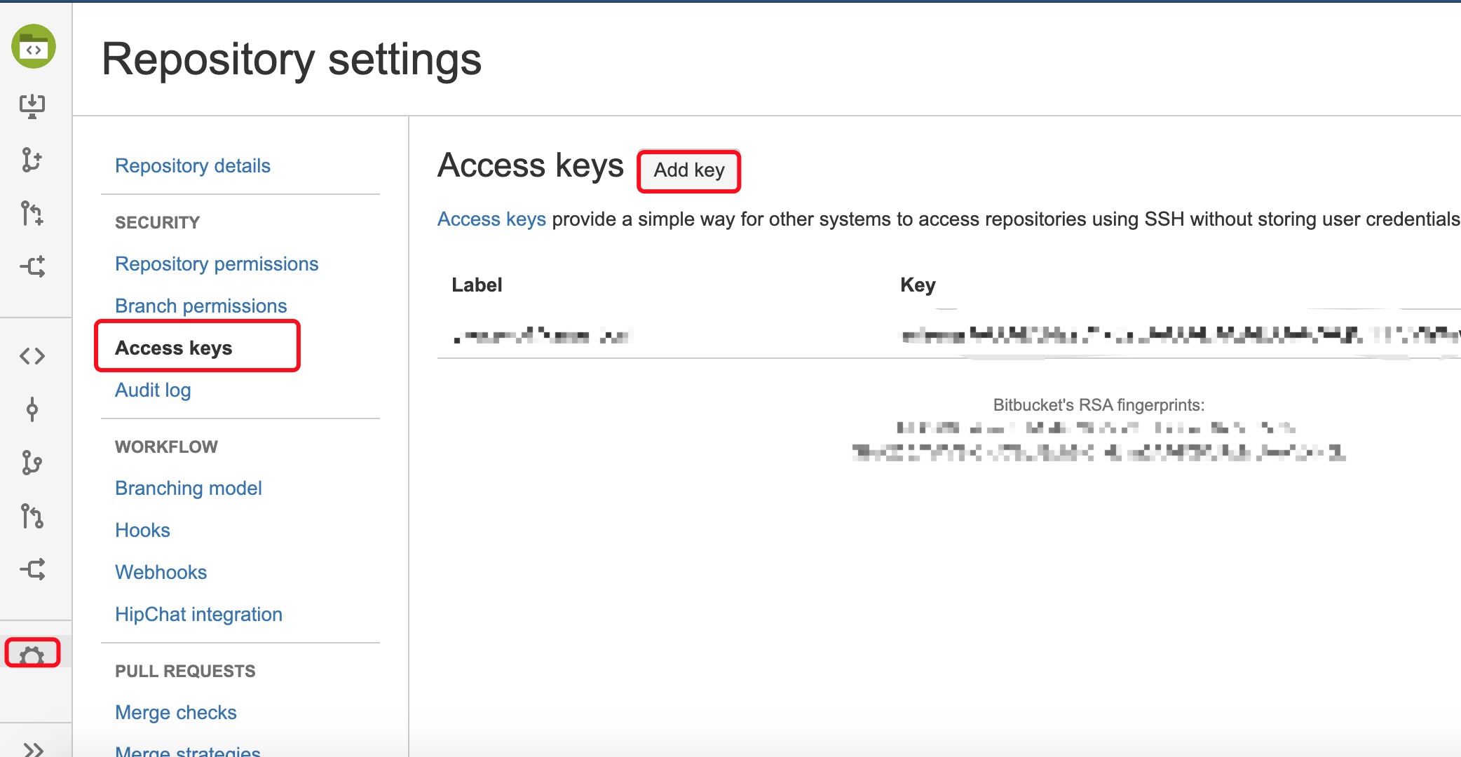 和github的deploy key类似,bitbucket也有类似的, 叫access key, 也可以设置读写权限, 这里我们只需要读取就行了.